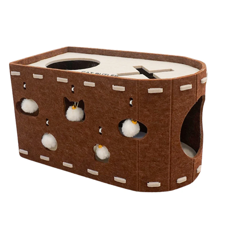 The felt is tough yet soft, perfect for all-day lounging or paw-powered play. It holds up well to scratching and bouncing, while staying cozy enough for long naps. The design blends into any home without clashing with your décor.